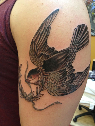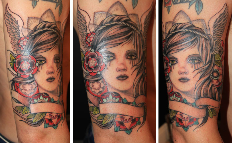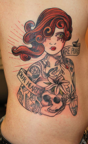 Patricia Mazza was born and raised in Queens, NYC. (Although she’ll cringe and say her mother’s rolling in her grave when you tell her she’s got the accent.) She has been drawing since she could hold a crayon, eventually progressing into pastels, oils , acrylics and other mediums. After attending the School of Visual Arts, she set out to satiate her wanderlust and discovered her love of the Caribbean Sea and the Peter Pan island of St John. After apprenticing in Queens, Pat traveled extensively in a constant search for artistic inspiration and aesthetic ideals. While her travels included Southeast Asia, Bali and Central America, she always returned to St John, where she founded the island’s first (and best) tattoo studio, Octopus Ink in 2007. The need to surround herself with other talented and like-minded artists pulled her back home to NYC, where she was fortunate enough to find Brooklyn Tattoo© and its crew. She enjoys drawing, painting and tattoo styles from all different cultures and eras. She has an affinity for stray animals, metal, aggressively dark chocolate and coffee. (With her stature, you be shocked at what this tiny woman can put away in baked goods!) All in all she’s an amazing and inspiring woman, and she is incredibly grateful that she loves what she does.